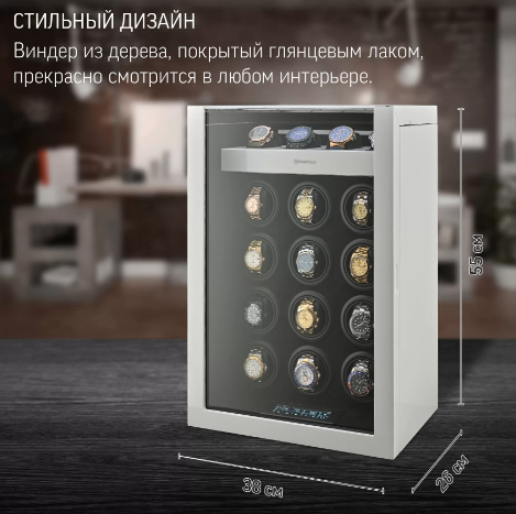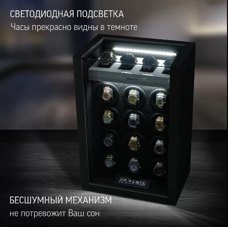 15 режимов подзавода подходят для любых автоматических часов. Можно выбрать количество оборотов в сутки (TPD) и направление вращения.