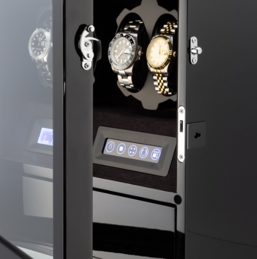 - функция стоп мотор: все моторы остановятся при открытии дверцы, чтобы Вы могли безопасно установить или достать свои часы;
