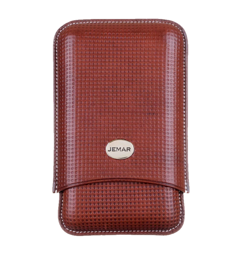 Новый сигарный чехол испанской компании Jemar (Хемар) из Бильбао, широко известной в сигарном мире своими курительными аксессуарами премиум-класса. Раздвижной чехол изготовлен из телячьей кожи с тиснением по традиционной технологии испанских кожевенников с использованием растительных дубильных веществ и натуральных органических красителей. Серебряная табличка с логотипом производителя. Идеальный вариант для хранения сигар, восприимчивых к посторонним запахам. Вмещает в себя 3 сигары длиной до 16 см и диаметром до 2,1 см (ring gage 53) формата Робусто, Сигло IV.