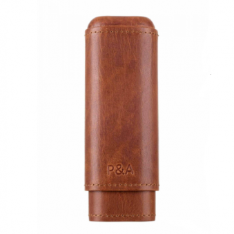 Чехол P&A (Италия) на 2 сигары Робусто, натуральная кожа и кедр, T1105-Cognac