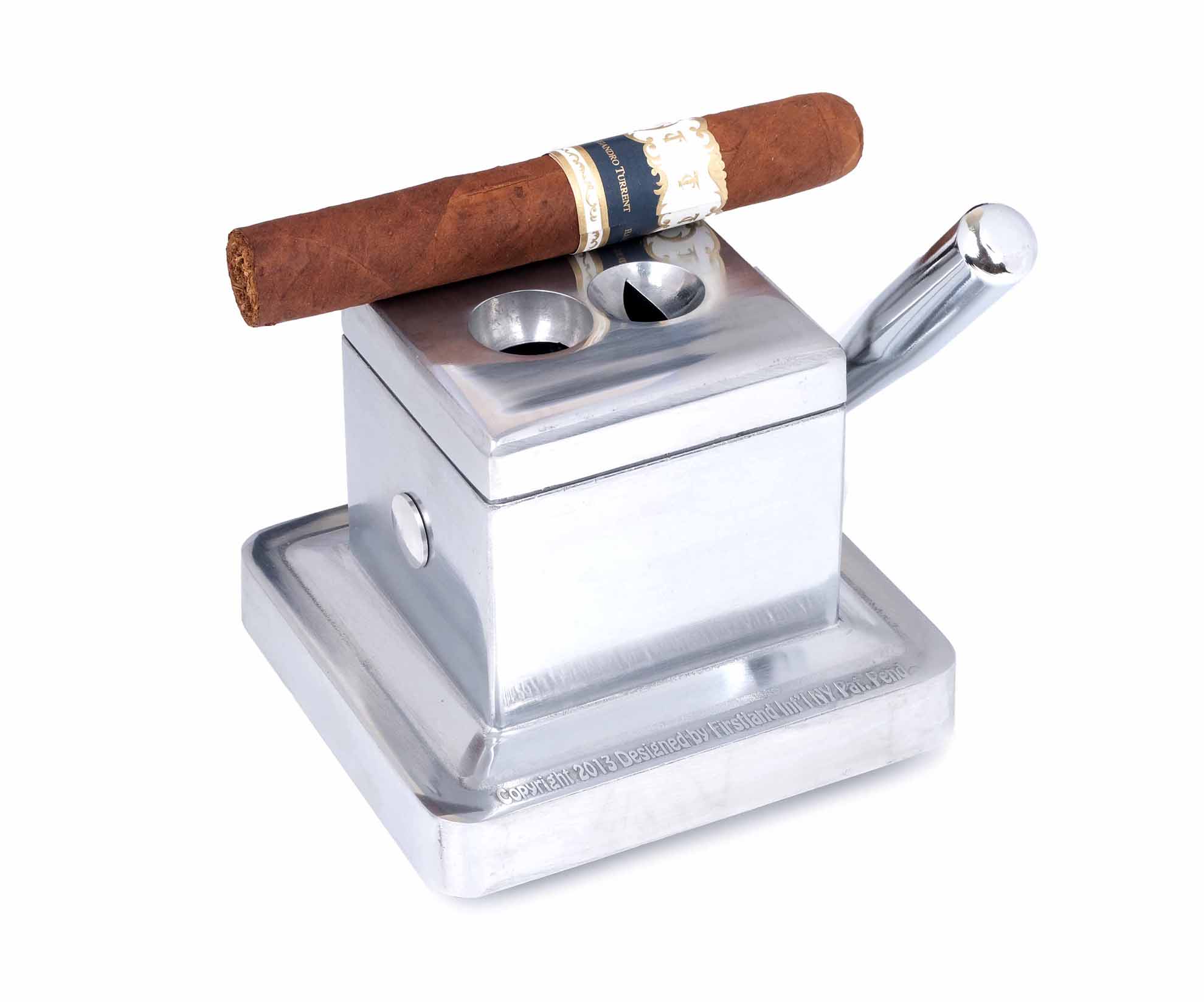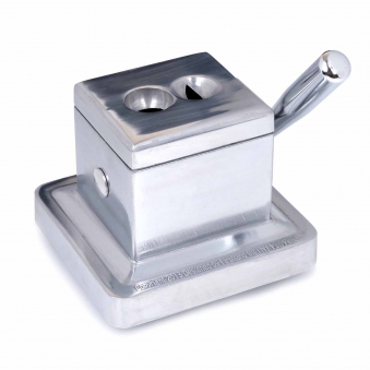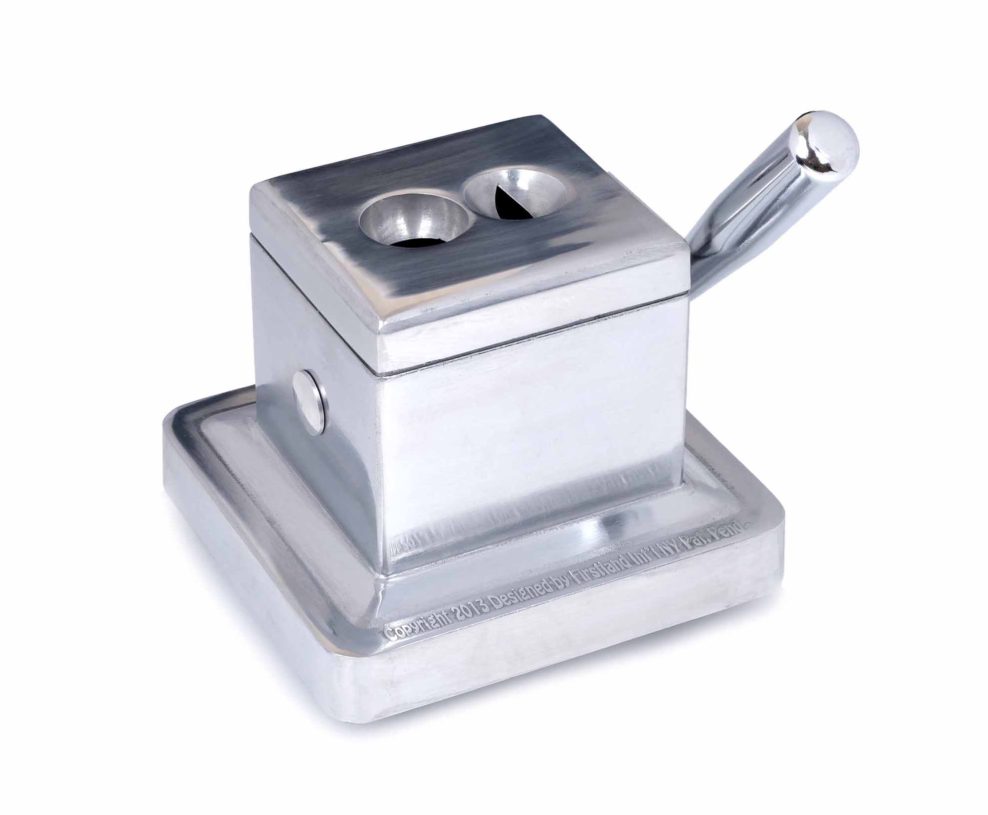 Настольная гильотина от известного немецкого бренда Passatore. Конструкция и дизайн разработаны в Нью-Йорке и защищены патентами. Модель представляет собой комбинацию в одном корпусе популярных сигарных каттеров Гильотина и V-Cut (кошачий глаз), оба с диаметром отверстия 17 мм. Вращающееся под отверстиями лезвие срабатывает при нажатии на подпружиненный рычаг. При обрезании сигары шапочка падает внутрь корпуса, внизу которого есть винтовая крышка для периодического удаления обрезков. Со временем, при необходимости технического обслуживания (заточка лезвия или смазка) механизм гильотины можно извлечь из корпуса, открутив 4 винта снизу.