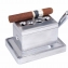 Настольная гильотина от известного немецкого бренда Passatore. Конструкция и дизайн разработаны в Нью-Йорке и защищены патентами. Модель представляет собой комбинацию в одном корпусе популярных сигарных каттеров Гильотина и V-Cut (кошачий глаз), оба с диаметром отверстия 17 мм. Вращающееся под отверстиями лезвие срабатывает при нажатии на подпружиненный рычаг. При обрезании сигары шапочка падает внутрь корпуса, внизу которого есть винтовая крышка для периодического удаления обрезков. Со временем, при необходимости технического обслуживания (заточка лезвия или смазка) механизм гильотины можно извлечь из корпуса, открутив 4 винта снизу.