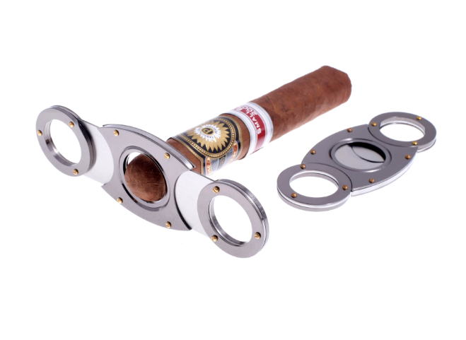 Сигарная гильотина от известного немецкого табачного бренда Passatore. Проста в исполнении, но при этом очень удобна в использовании. Изготовлена из нержавеющей стали. Для сигар диаметром до 21 мм.