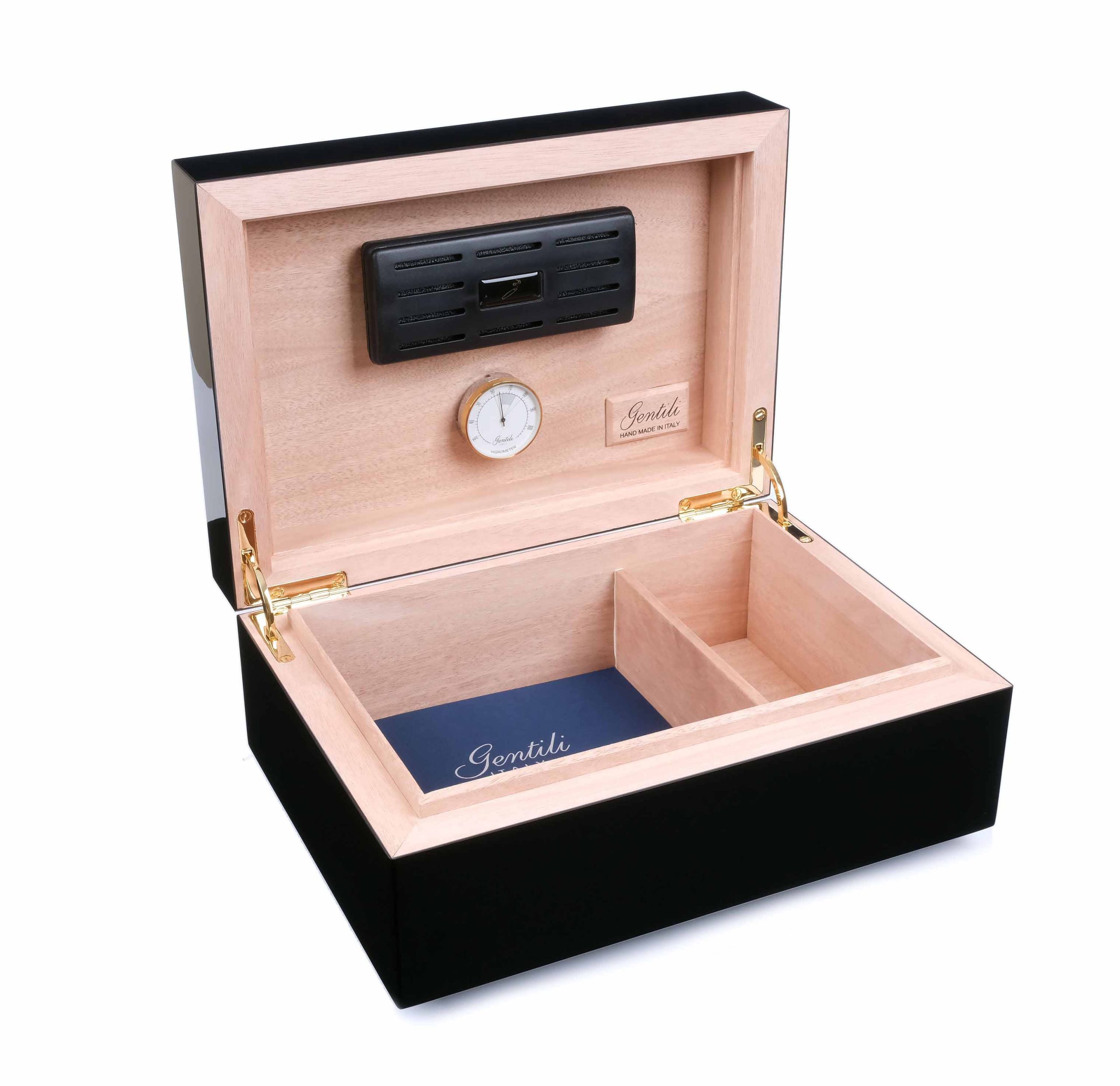 Хьюмидор Gentili (Италия) Fumatore Dorato на 50 сигар, Черный лак, SV50-Black-Smoker-Gold