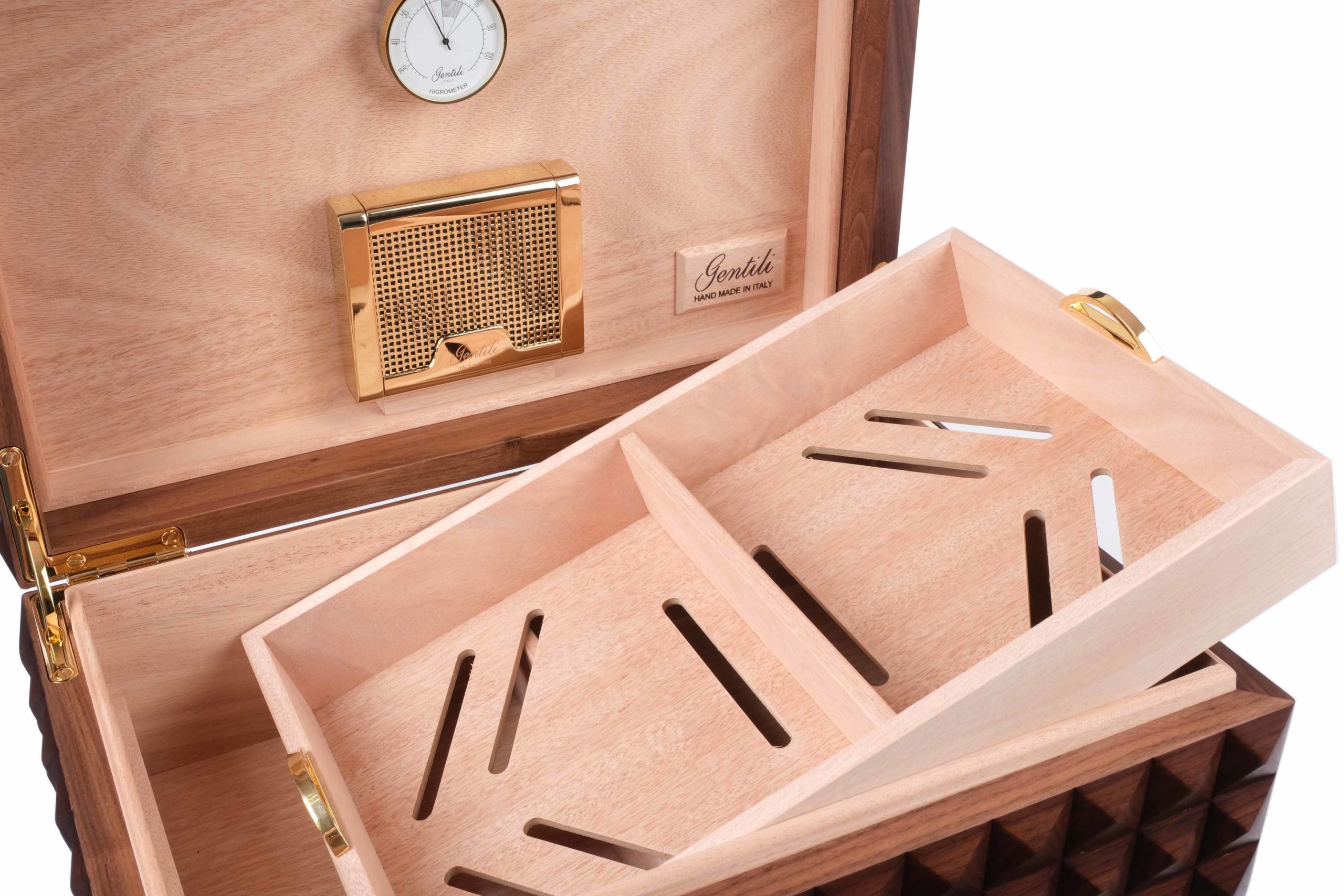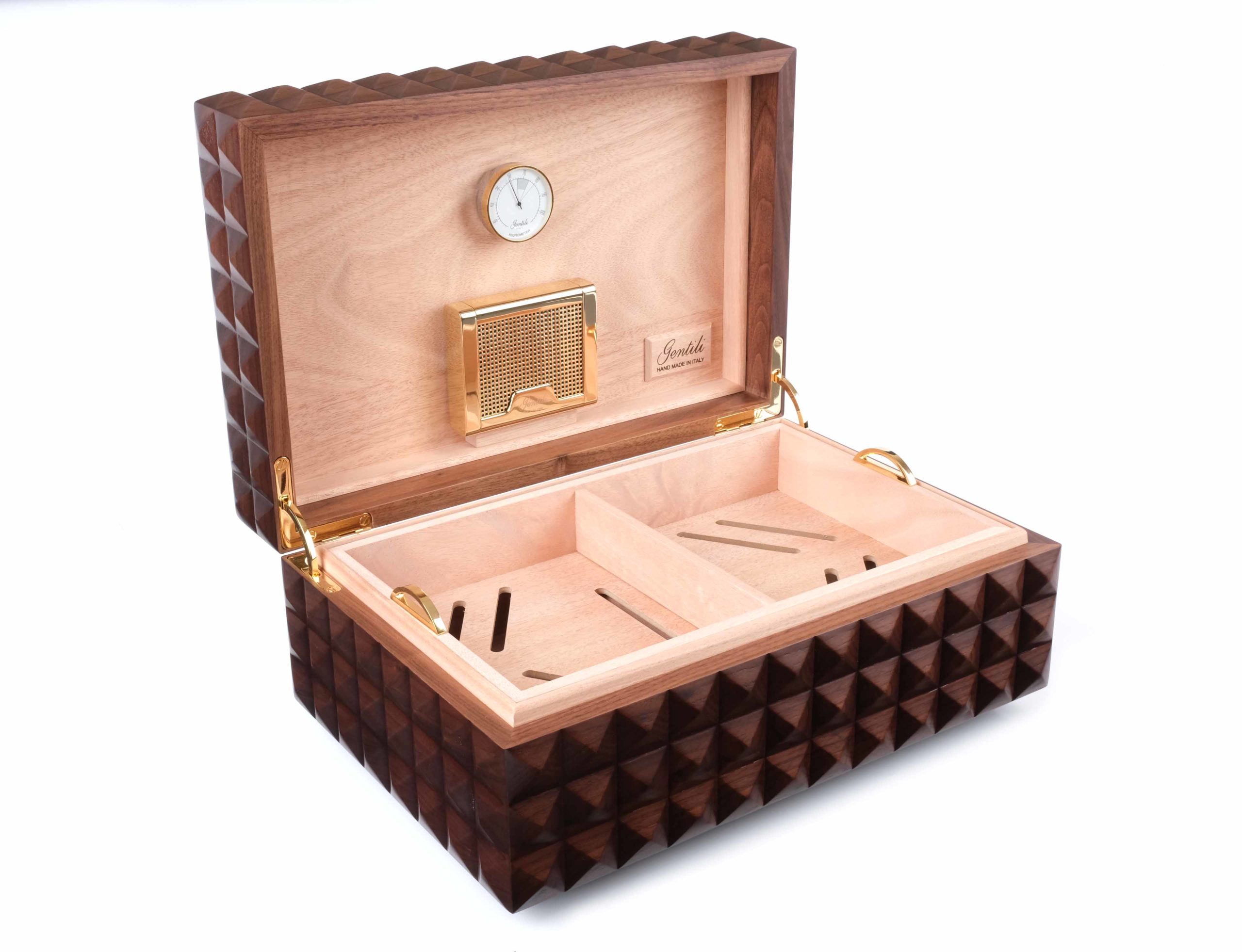 Производство: ручная сборка в Италии, каждый этап, от подбора шпона до финальной полировки, выполняется вручную мастерами фабрики. Это не массовое производство, а ремесленный подход, где каждое изделие проходит строгий контроль качества. Fabrizio Gentili SRL — бренд, который более 40 лет создаёт хьюмидоры, сочетающие традиции итальянских мастерских с современными требованиями к функциональности и долговечности.