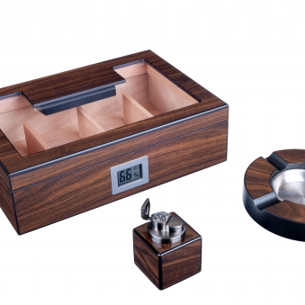 Настольный набор сигарных аксессуаров от итальянской компании Lubinski SRL, состоящий из трех предметов: хьюмидора для хранения 50-ти сигар, элегантной пепельницы и зажигалки. Идеальный подарок для любого ценителя сигар.