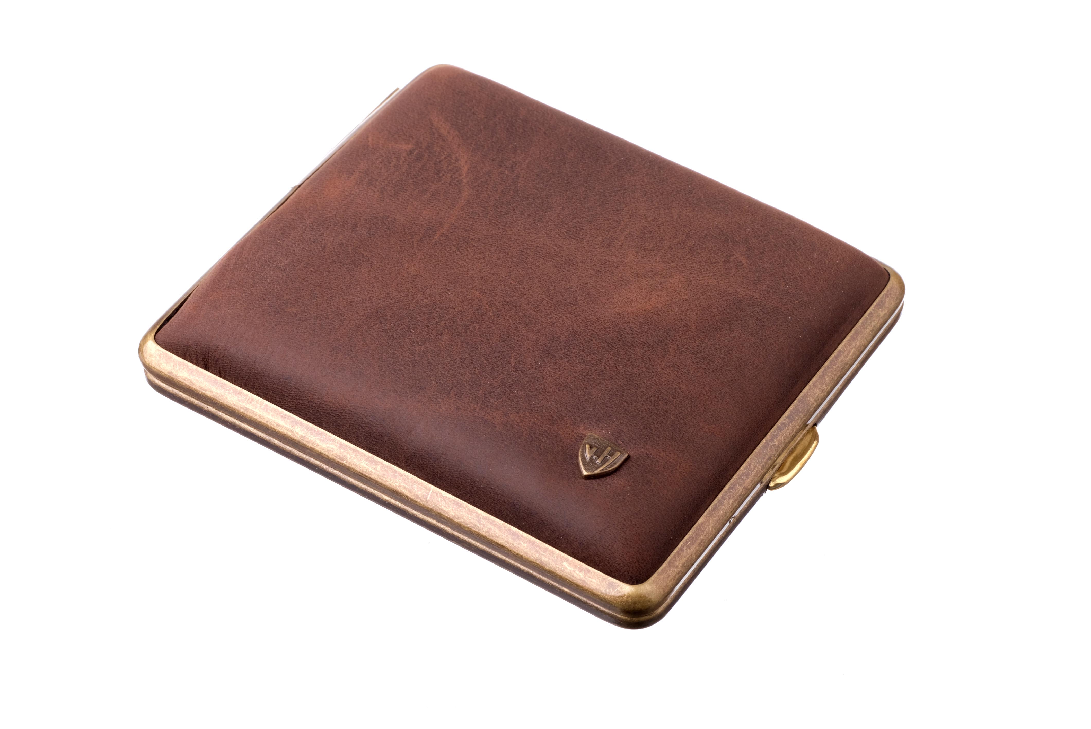 Портсигар Stoll (Германия) на 18 сигарет, натуральная буйволиная кожа, Коричневый, С24