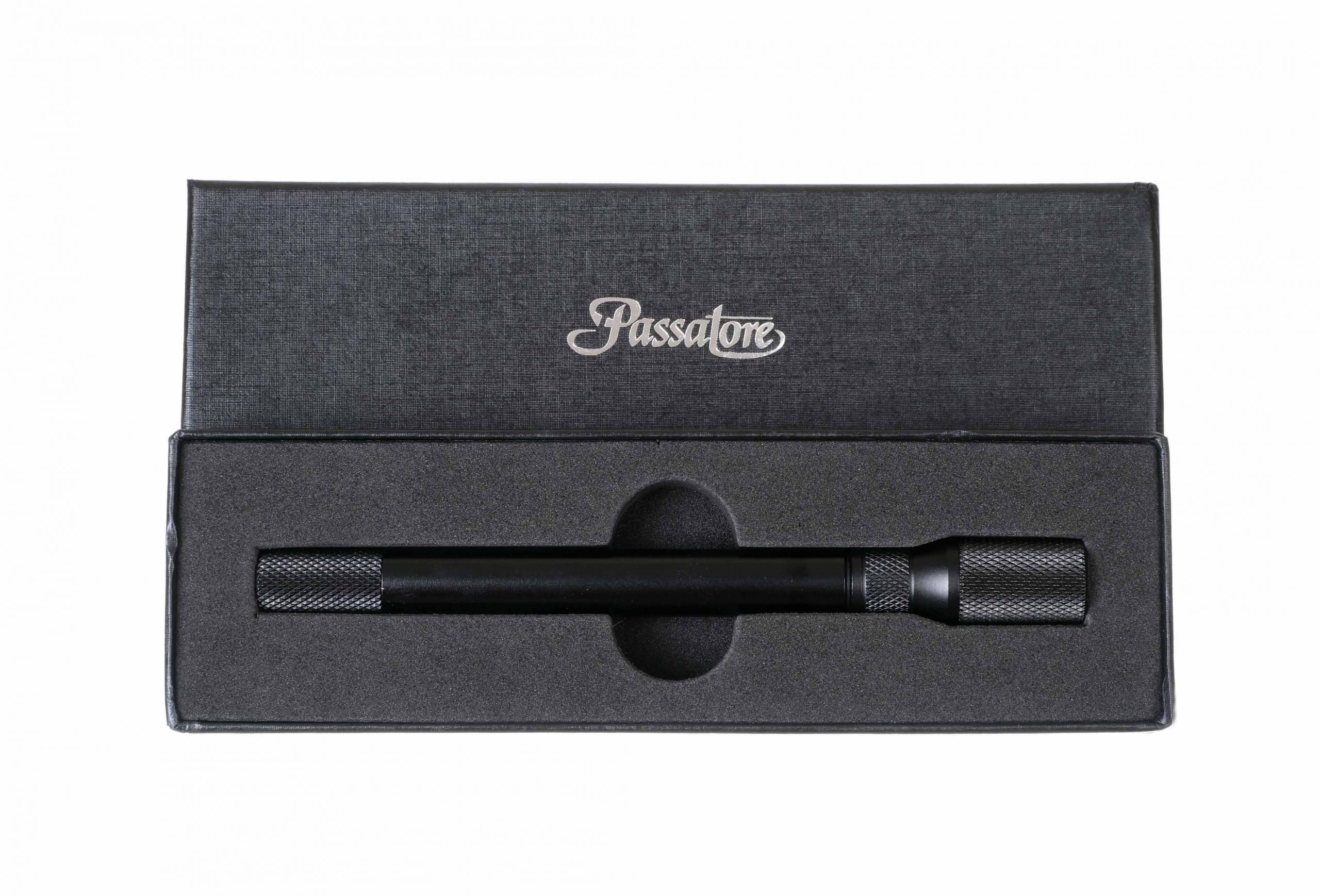 Высококачественный пробойник для сигар от известного немецкого бренда Passatore. Стильный эргономичный дизайн в виде письменной ручки сочетается с удобством применения. Круглые лезвия 8 и 10 мм изготовлены из Золингеновской нержавеющей стали и имеют специальную заточку-шлифовку изнутри, чтобы обеспечить дополнительное давление на покровный лист и, соответственно, идеально ровные края среза. Дополнительный центральный стержень в пробойнике служит не только для прочистки, но и для заточки лезвий. Спиральное шило длиной 80 мм служит для прокалывания сигары и улучшения тяги. Изготовлено из нержавеющей стали и алюминия. Сделано в Германии.