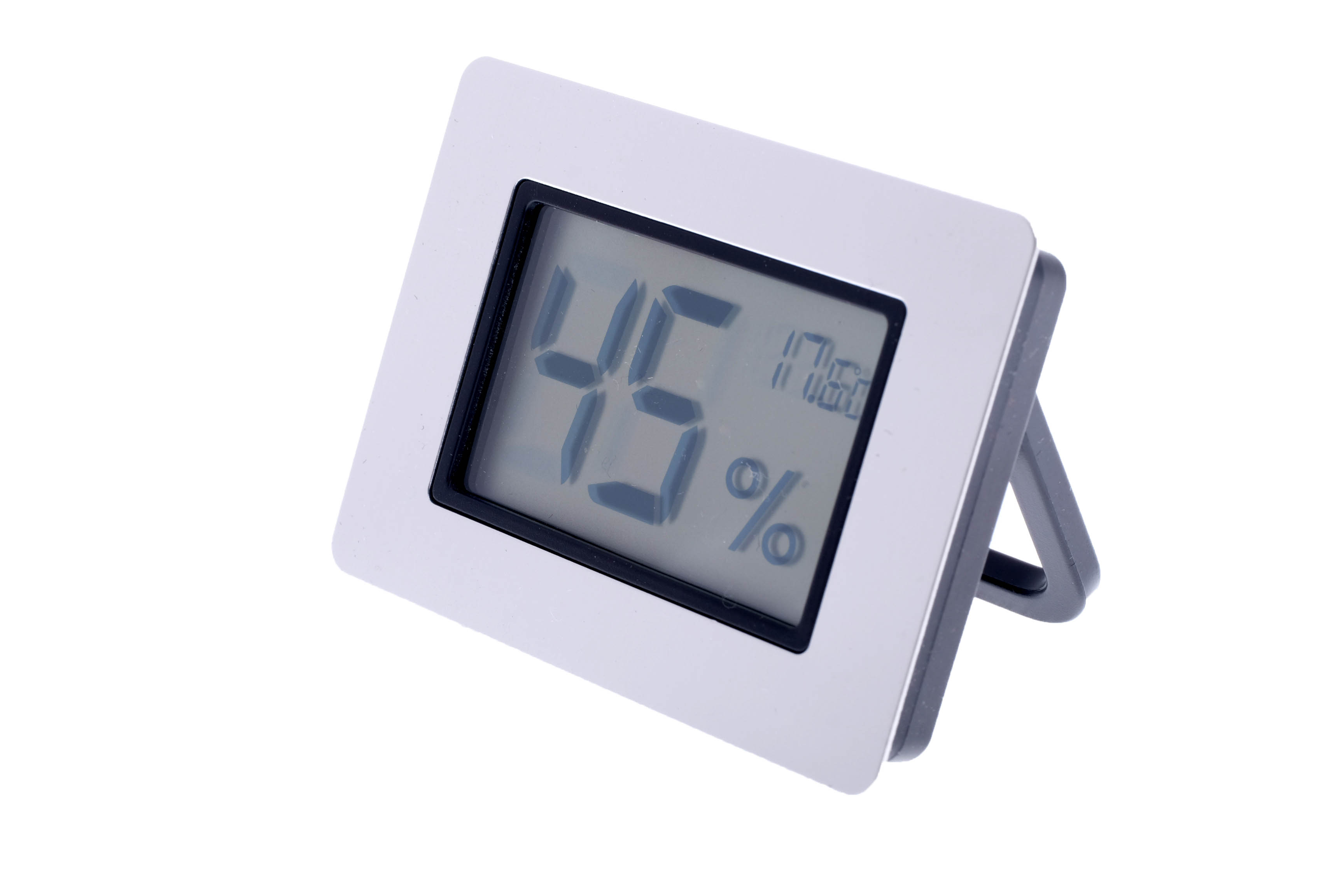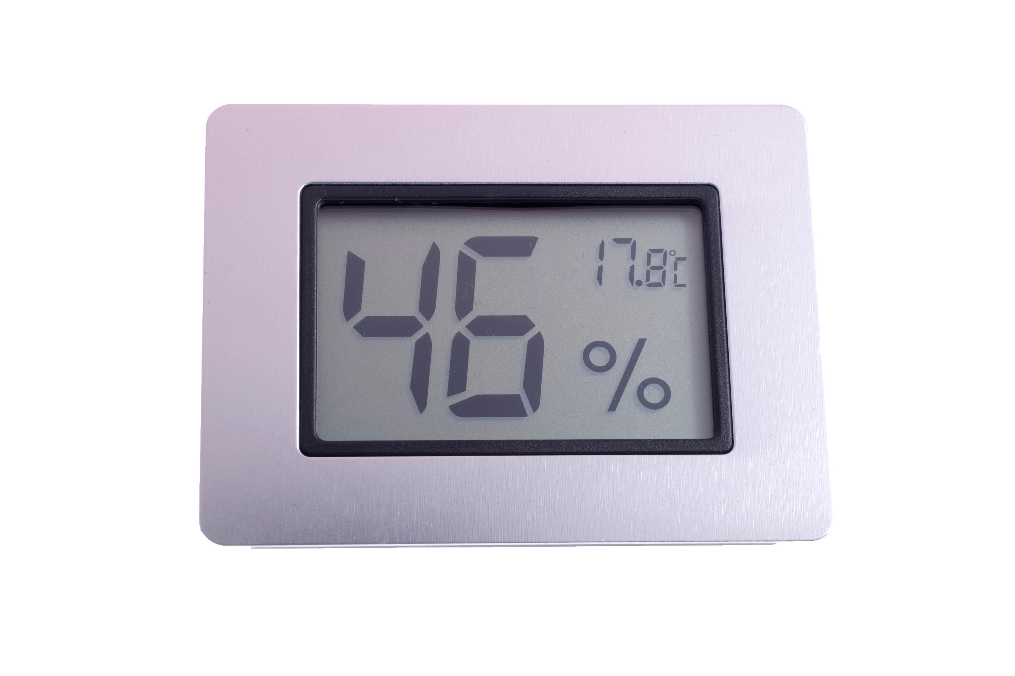 Универсальный цифровой термо-гигрометр с электронной схемой измерения влажности и температуры как в настольных хьюмидорах, так и в хьюмидорных шкафах и комнатах. Имеется переключатель градуировки температуры С/F. В комплекте магнит/липучка для крепления. Может быть встроен в посадочное гнездо на корпусе хьюмидора. Размер посадочного гнезда 50 на 37 мм. Корпус гигрометра пластик с металлической окантовкой золотистого или серебристого цвета.