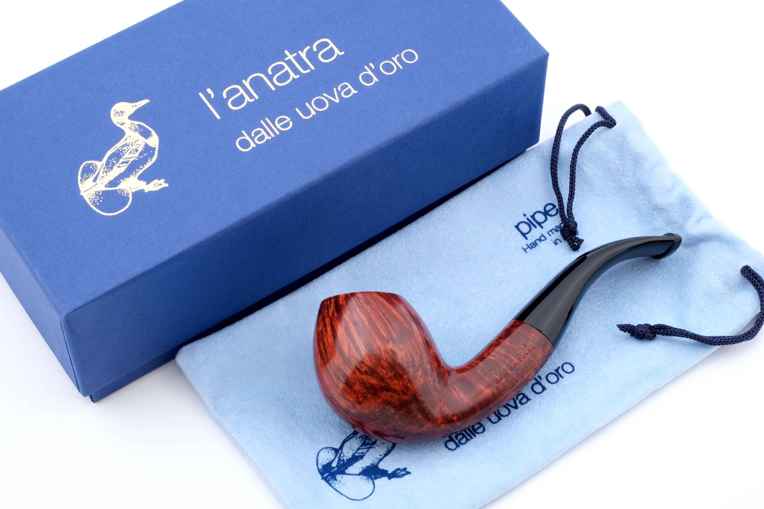 На мундштуке нанесен символ компании — серебряная голова утки и на чубуке — девиз L’Anatra dalle uova d’oro — «Утка несущая золотые яйца» и Hand made in Italy, грэйд «2 яйца»