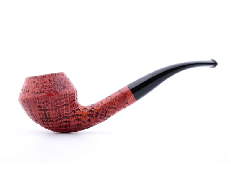 Легкая курительная трубка L’Anatra с отделкой Сэндбласт (когда мощная струя измельченного в песок стекла выбивает мягкие частицы корнекапа, оставляя твердые капилляры и придавая осязаемый объем натуральному рисунку бриара, площадь поверхности трубки при этом увеличивается, что способствует лучшему охлаждению чаши и более приятному «прохладному» курению, также снижается и вес трубки).