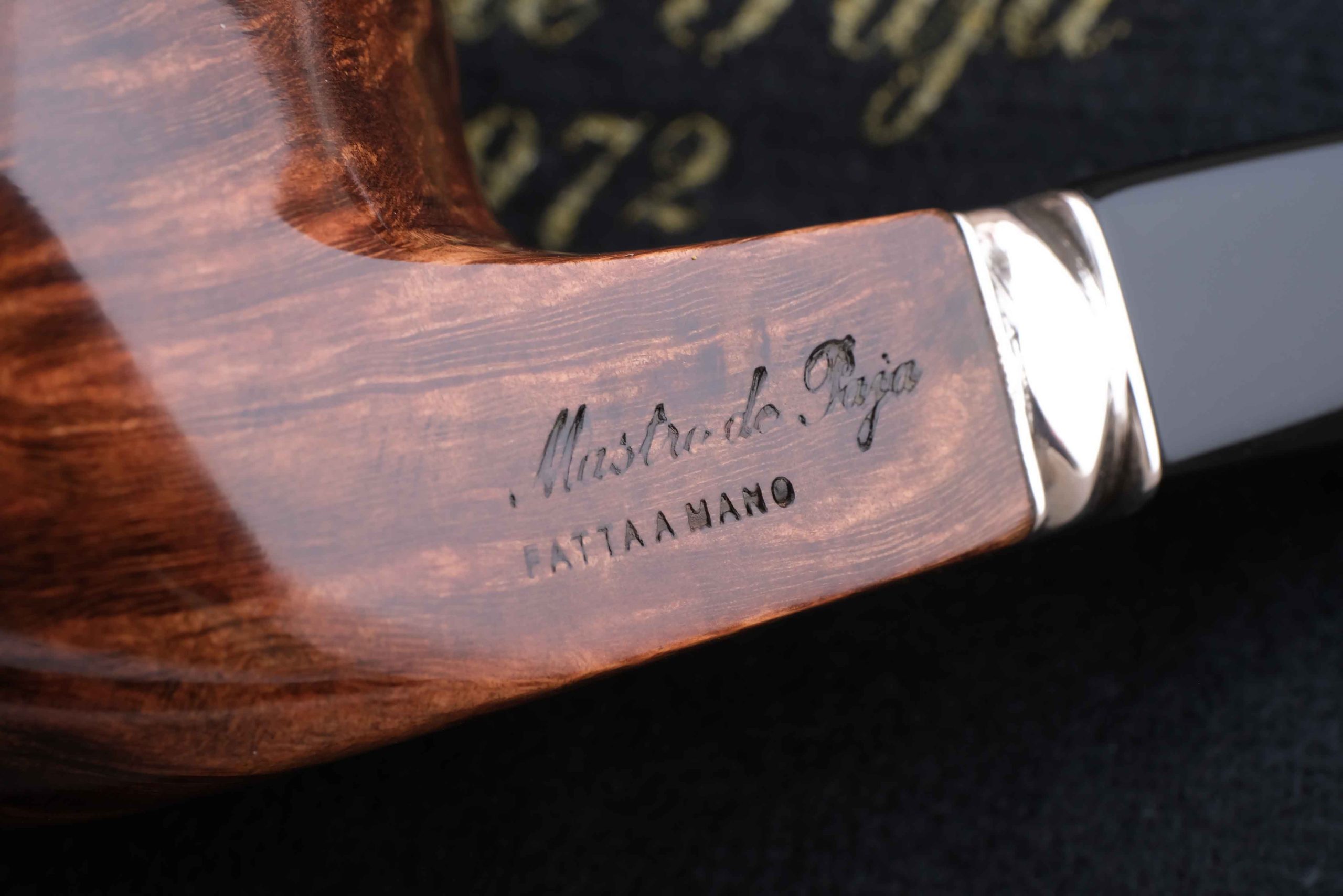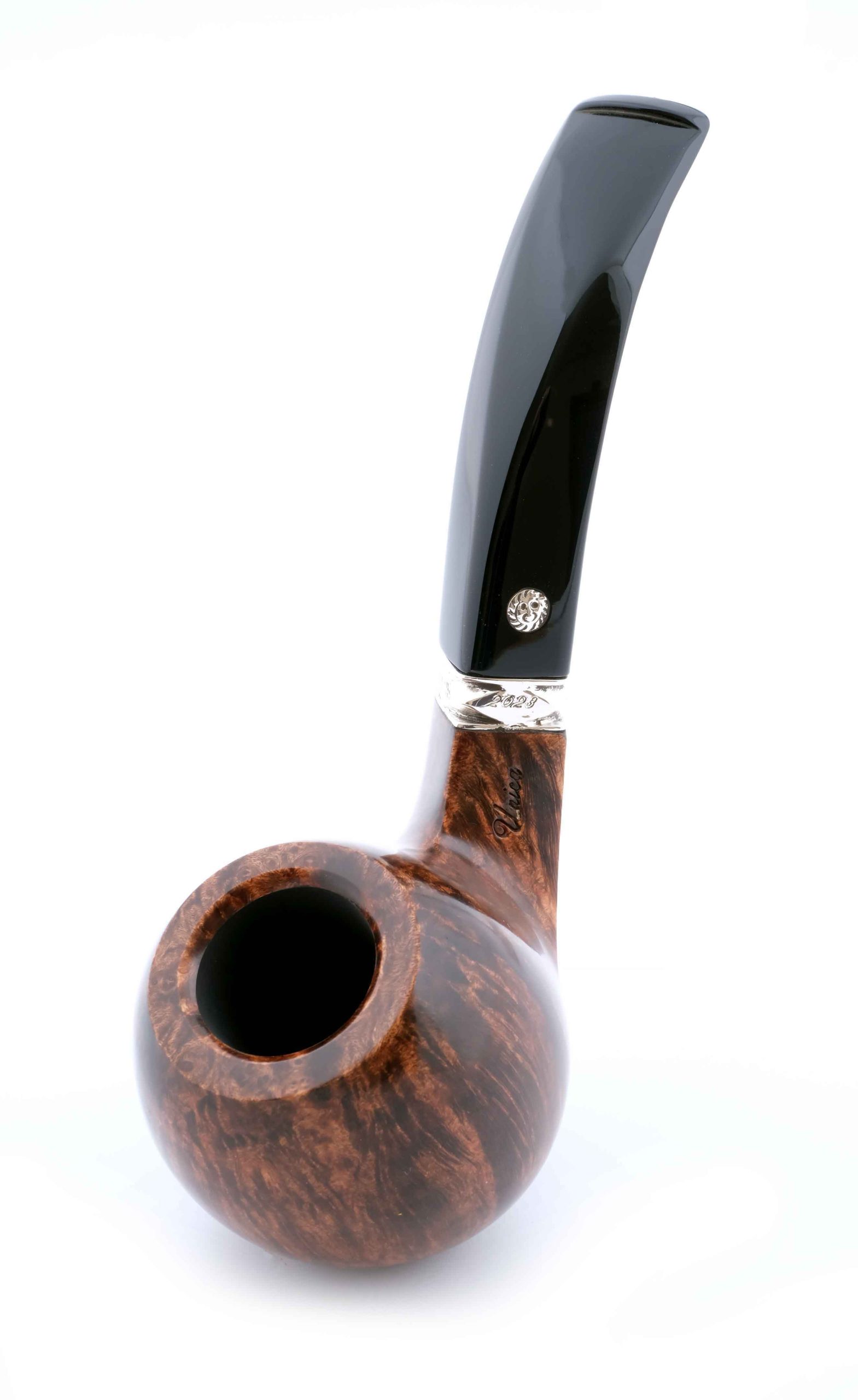 Трубка модели CLUB 2023 из мастерской Мастро де Пайа. Принадлежит к лимитированной серии Годовых трубок, выпускаемых в количестве 300 штук в разной финишной отделке. Кольцо на чубуке — серебро 925 пробы. Фильтр 9 мм. Вес 74 гр. Длина трубки 15 см. Диаметр чашки 48 мм. Высота чашки 54 мм. Диаметр табачной камеры 20 мм., глубина 41 мм. В комплекте подарочная шкатулка, фирменный кисет и буклет компании Mastro de Paja. Ручная работа