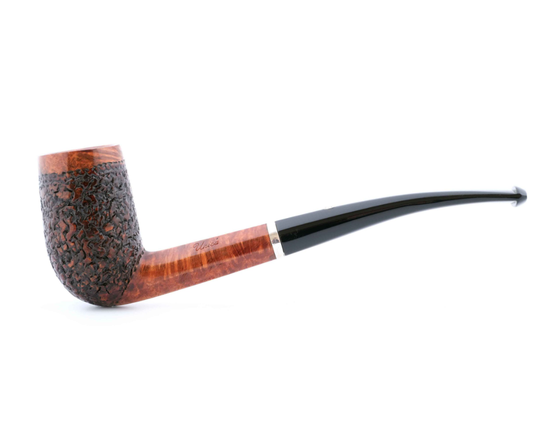 Суперлегкая трубка из мастерской Мастро де Пайа. Принадлежит к лимитированной серии Unica, где каждый экземпляр неповторим, имея свой индивидуальный дизайн. Рустирование придает объем и увеличение поверхности охлаждения чаши.