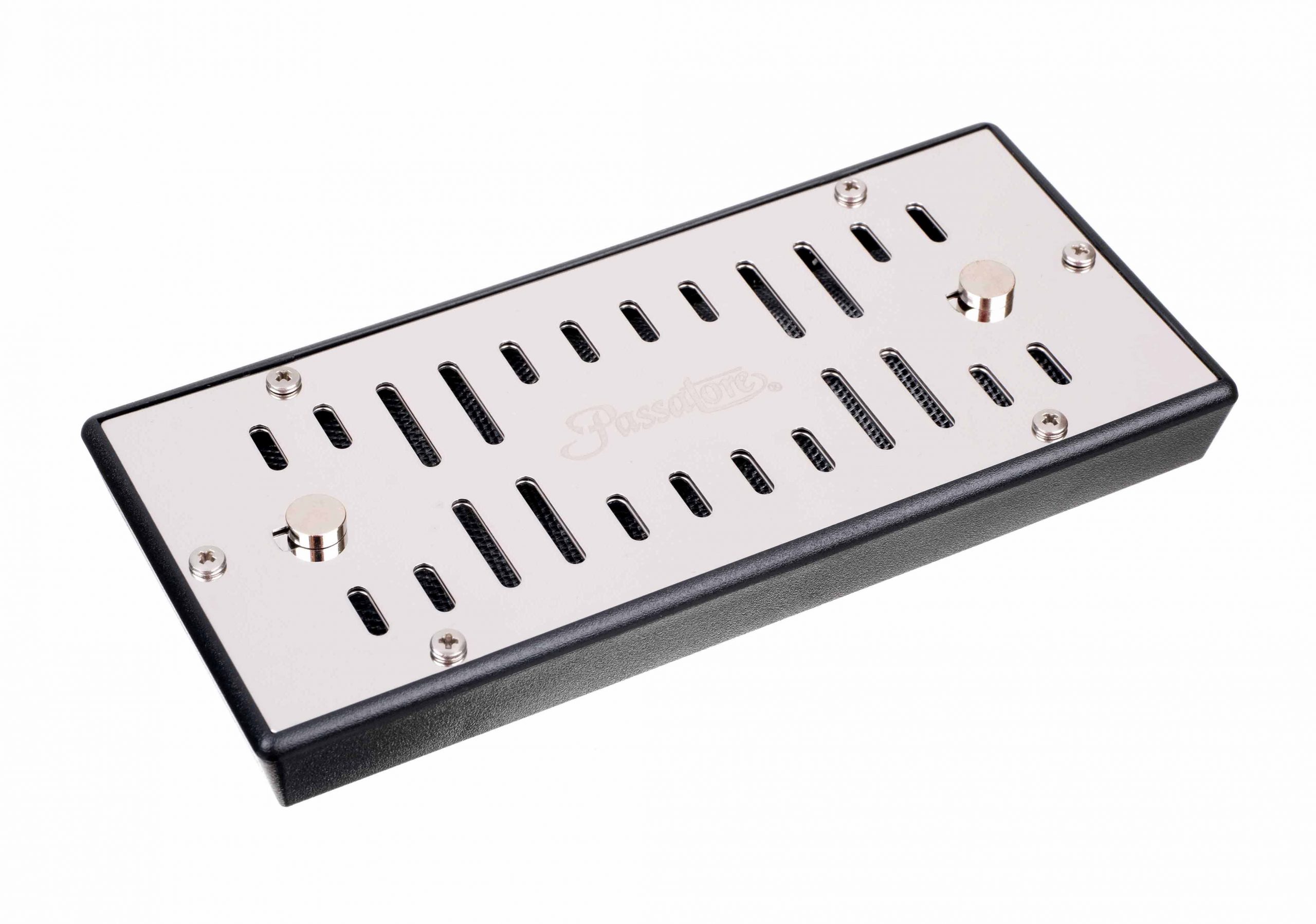 Увлажнитель немецкой марки Passatore на 100 сигар. Корпус — пластик и металлическая решетка со шторками для регулировки влагоотдачи, внутри — акриловые шарики нового поколения. При заполнении дистиллированной водой шарики за 30 минут увеличиваются в размере с 2 до 10-12 мм и автоматически поддерживают влажность в хьюмидоре на уровне 70-75% в течение 20-30 дней. При высыхании увлажнителя шарики уменьшаются обратно, что служит сигналом для повторной заправки дистиллированной водой. В комплекте магнитное крепление на крышку/стенку хьюмидора и инструкция по эксплуатации.