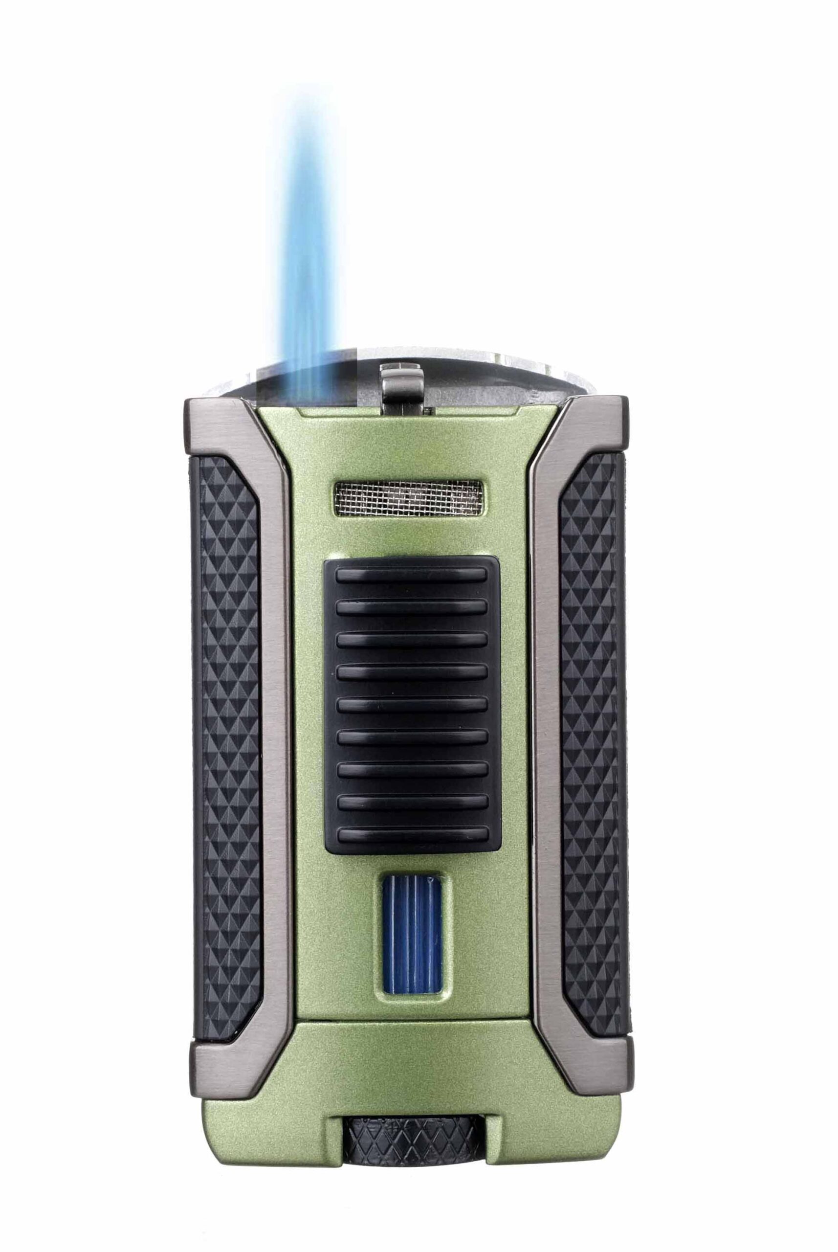 Сигарная газовая зажигалка APEX, чьё название и дизайн продиктованы миром автоспорта: апекс — точка в повороте, выходя из которого, водитель полностью выжимает педаль газа для быстрейшего выхода из этого поворота. Мощное одноструйное пламя разгорается при одном нажатии кнопки, а воздухозаборники на передней и боковой гранях подают кислород к горелке. Топливное окно окрашено в синий цвет и расположено на передней части корпуса для моментального считывания уровня топлива. Боковые и задняя грани зажигалки покрыты специальным прорезиненным материалом, защищающим лакированный корпус от царапин и обеспечивающим надежное расположение в руке при использовании. Внизу корпуса размещен винт, регулирующий высоту пламени. Простой в использовании регулятор топлива. Одноструйное пламя. Легко читаемое окно уровня топлива. Ветроустойчивость. Зажигание одним движением.