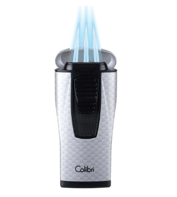 Зажигалка сигаретная, сигарная Colibri (Великобритания) Monaco (тройное пламя), серебристый карбон, LI880T11